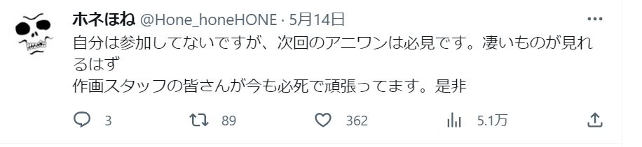 【アニワン】作画凄えええええええええええええ!!!!!!!!!! 2023年05月21日 カテゴリ:ワンピース 344: 名無しさん 2023/05/21(日) 09:54:07.44 ID:JrUzKAhE0なんか作画がすごい凝ってねぇか? 制作会社変わった? 356: 名無しさん 2023/05/21(日) 09:54:34.61 ID:SKDCEIvK0>>344 たまに作画解放する 389: 名無しさん 2023/05/21(日) 09:55:37.27 ID:QVssGPre0>>344 卍解使ってる 【【アニワン】作画凄えええええええええええええ!!!!!!!!!!】の続きを読む